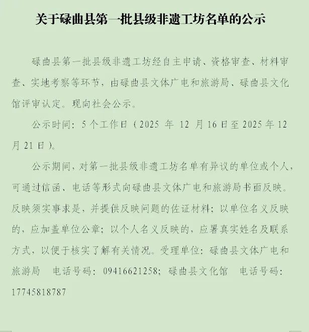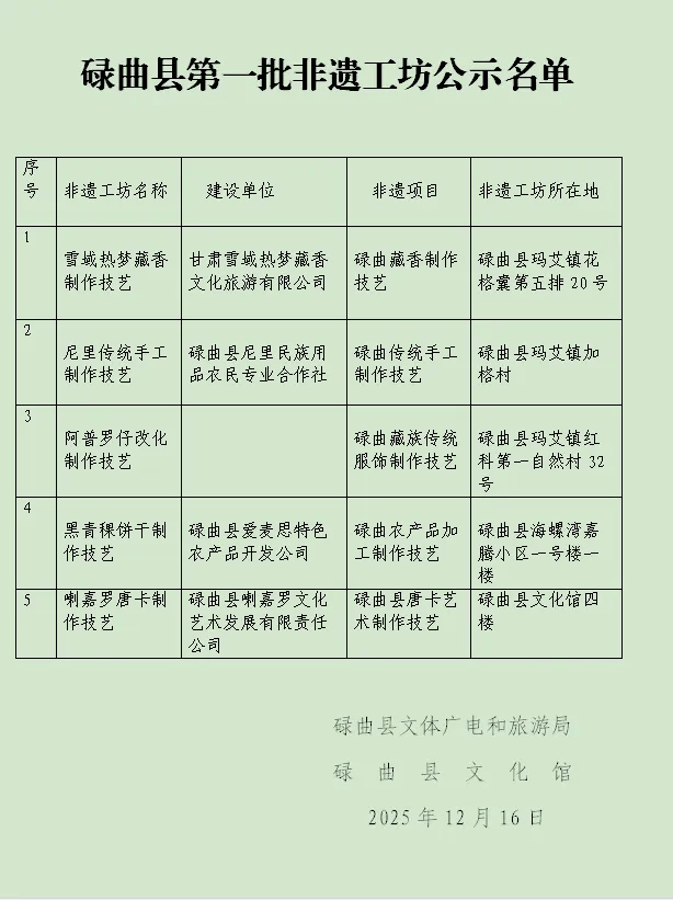 关于碌曲县第一批县级非遗工坊名单的公示
